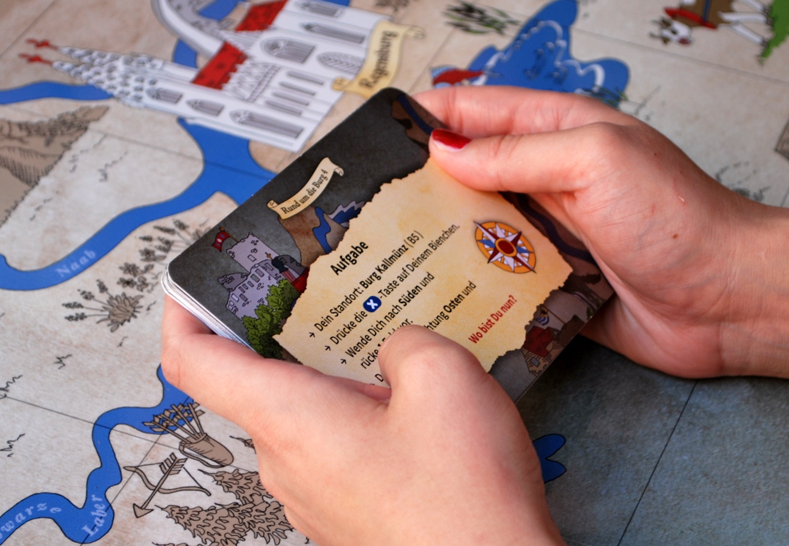 - eine Schatzkarte, die den Landkreis mit seinen Flüssen als Insel zeigt. Neben den Burgen zieren noch viele Tiere, Ritter Wonnebold und Burgfräulein Hilde die Karte.